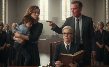 The courtroom was cold. My little boy, Thomas, was crying on my shoulder, and my husband Marcus pointed right at us. “Take your kid and get out,” he said, loud enough for …