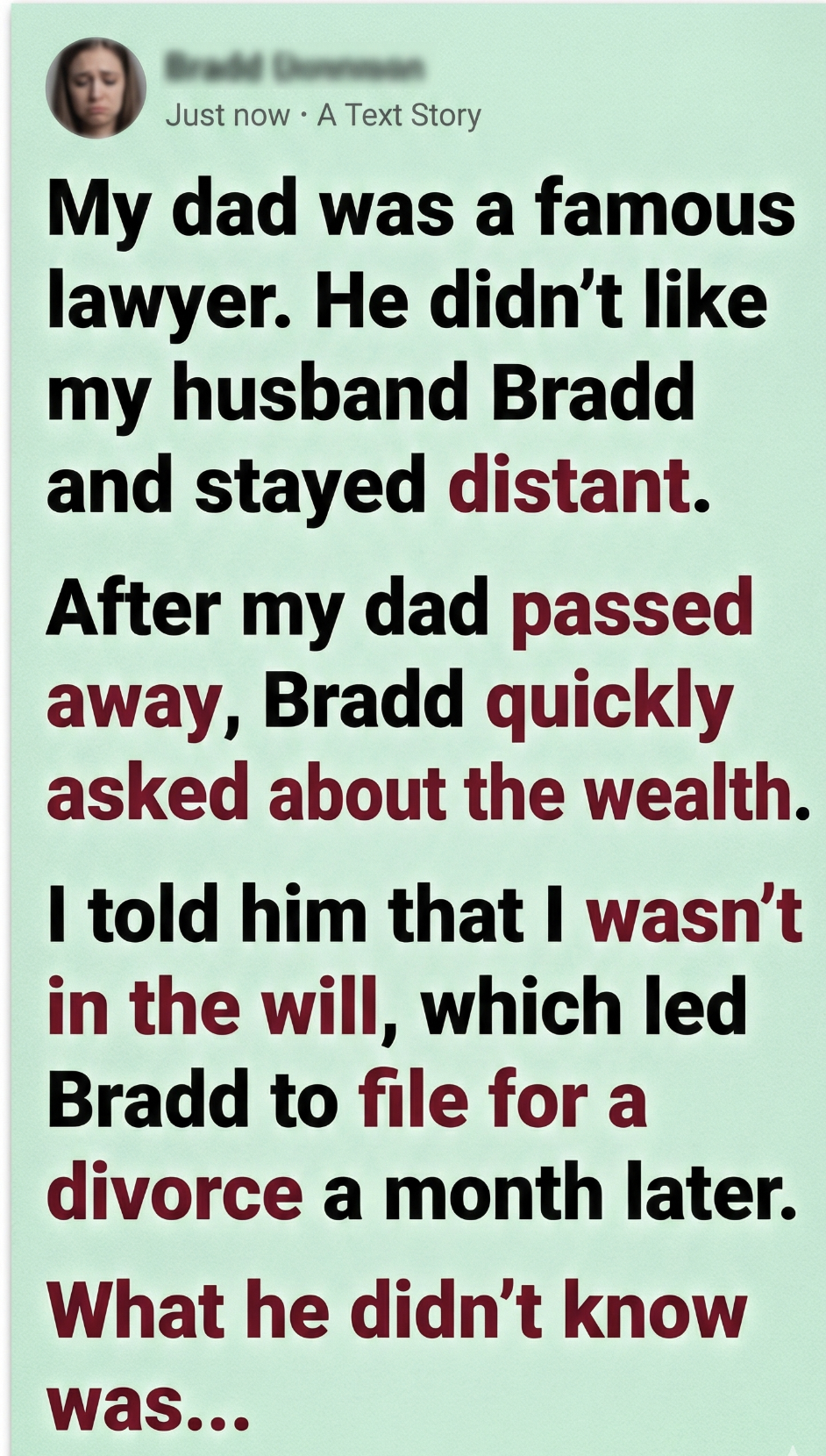 After my dad passed away, Bradd quickly asked about the wealth.