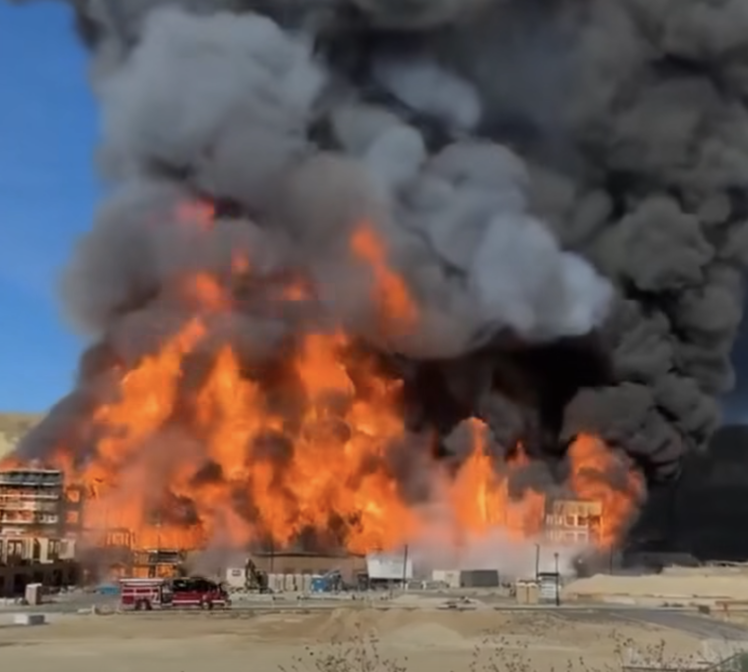 Video shared by residents shows flames shooting several stories high, swallowing the structure as thick clouds of smoke rolled across the skyline. The fire could be seen from miles away, prompting hundreds of calls to emergency services as panicked neighbors evacuated nearby homes.