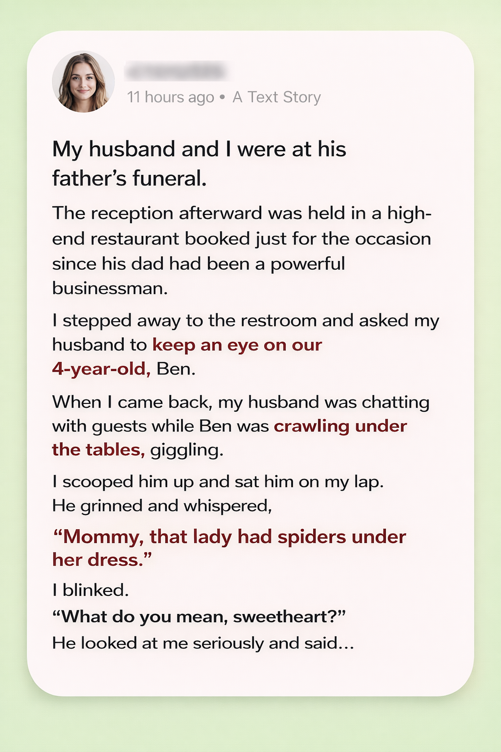 He tugged softly at the hem of my black dress, leaned in close, and whispered words so simple yet so shattering: