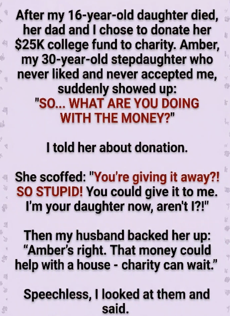 “Amber’s right,” he said. “That money could help her with a house. Charity can wait.”