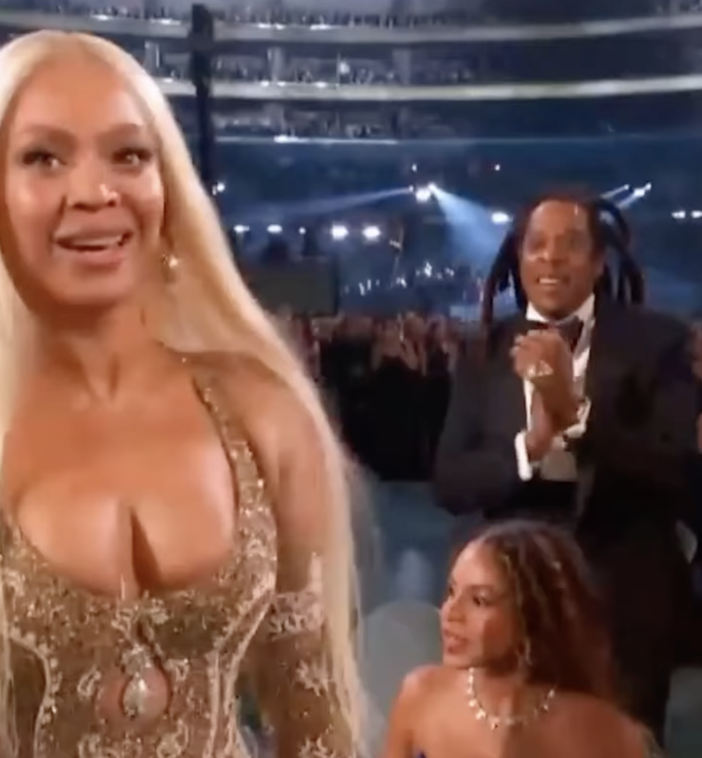 During the live broadcast, when pop-icon Beyoncé heard her name called, she appeared stunned — momentarily frozen, with a visible look of disbelief before she stood up and accepted the trophy (presented by Taylor Swift).
