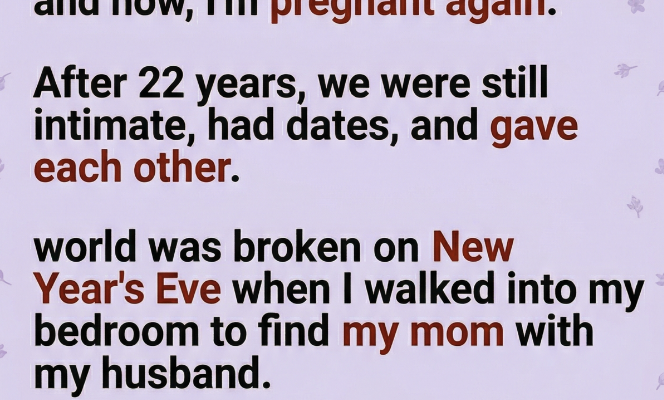 My husband and I had been married for 22 years. We had four kids together, built a life that looked strong from the outside, and even after all those years, we still had a connection. We went on dates, we laughed, we were still intimate, and I truly believed we were one of those couples who made it through everything. When I found out I was pregnant again, it wasn’t planned, but it didn’t feel wrong either. I thought it was just another unexpected chapter in a life we had already built together. I believed we were happy. That belief shattered on New Year’s Eve. Earlier that night, the house had been full of noise, celebration, and countdowns, but by midnight everything had quieted down. I went upstairs to my bedroom, not expecting anything unusual, just thinking I’d grab something and come back down. When I opened the door, my entire world collapsed in a single second. My husband and my mother were together in my bed. For a moment, I couldn’t even process what I was seeing. It didn’t feel real. My mother jumped back in shock, my husband started talking fast, trying to explain, but I didn’t hear a single word. I didn’t scream. I didn’t argue. I just turned around and walked out because something inside me had already broken beyond repair.