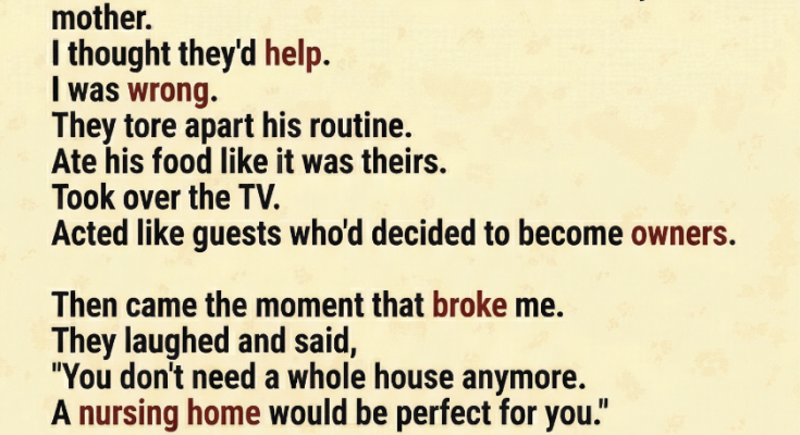 From the moment they arrived, they treated his home like it belonged to them. They rearranged things without asking. Ate through his groceries like they had paid for them. Took over the living room, the TV, even the small spaces where he used to sit quietly and read. They didn’t yell. They didn’t fight. They just slowly erased him from his own home.