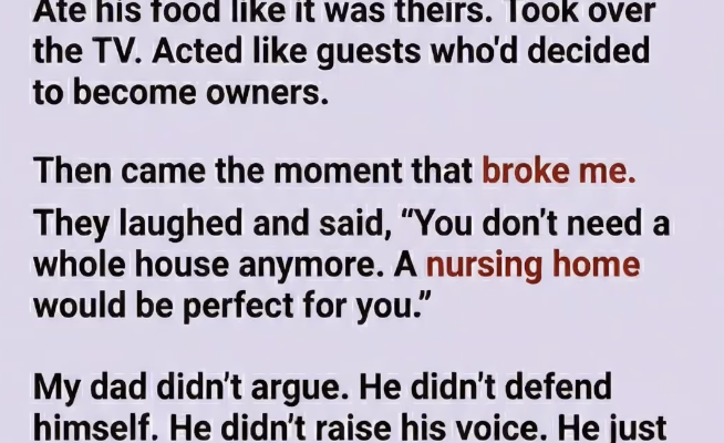 He adjusted. Moved out of his usual chair. Ate less. Spoke less. Watched them take over his life piece by piece without saying a word.