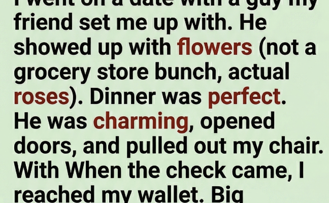 I went on a date with a guy my friend set me up with. He showed up with flowers—not a cheap grocery store bouquet, but real roses that still smelled fresh, like he’d picked them out carefully. Dinner felt effortless. He was charming in that quiet, confident way. He opened doors, pulled out my chair, and actually listened when I spoke. Not just nodding—listening.