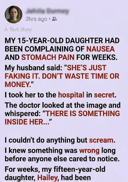 I knew something was wrong long before anyone else cared to notice. For weeks, my fifteen-year-old daughter, Hailey, had been complaining of nausea, sharp pains in her stomach, dizziness, and a constant sense of exhaustion that didn’t feel normal.