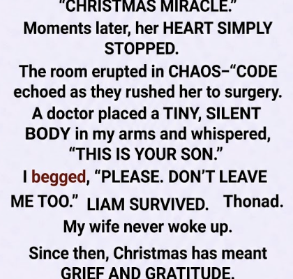 Ten years ago, on Christmas morning, my wife and I entered the hospital hand in hand, waiting for our “Christmas miracle.” Moments later, her heart simply stopped. The room erupted in chaos—“Code Blue!” echoed as they rushed her to surgery. A doctor placed a tiny, silent body in my arms and whispered, “This is your son.” I begged, “Please… don’t leave me too.” Then Liam cried. Liam survived. My wife never woke up.