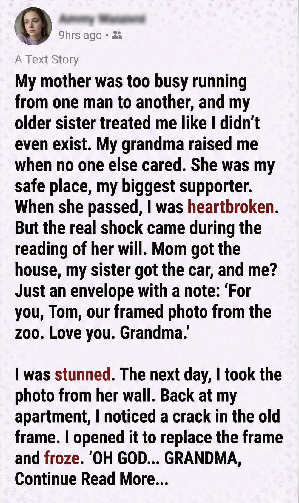My Family Took the House and the Car—I Got a Cracked Photo Frame