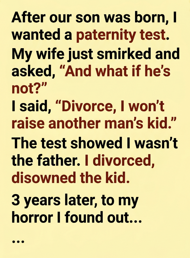 “Then I’ll file for divorce,” I said. “I won’t raise another man’s kid.”