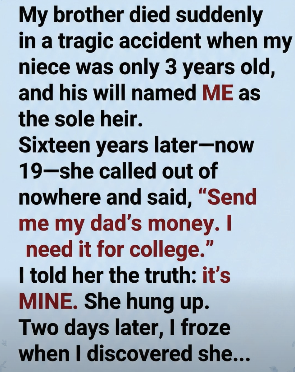 My Niece Called Me at 19 and Said, “Send Me My Dad’s Money”—The Will Changed Everything