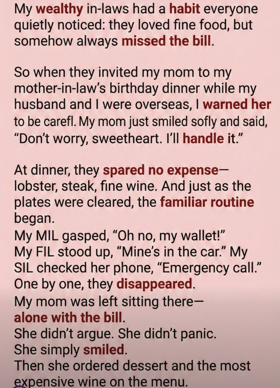 “Oh no,” my mother-in-law said suddenly, patting her purse. “I forgot my wallet.”
